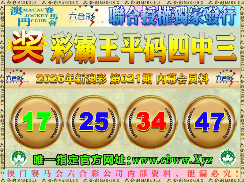 021期:彩霸王平码四中三:17-25-34-47 错