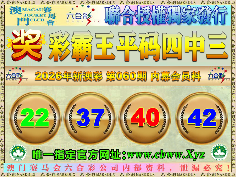 060期:彩霸王平码四中三:22-37-40-42 错