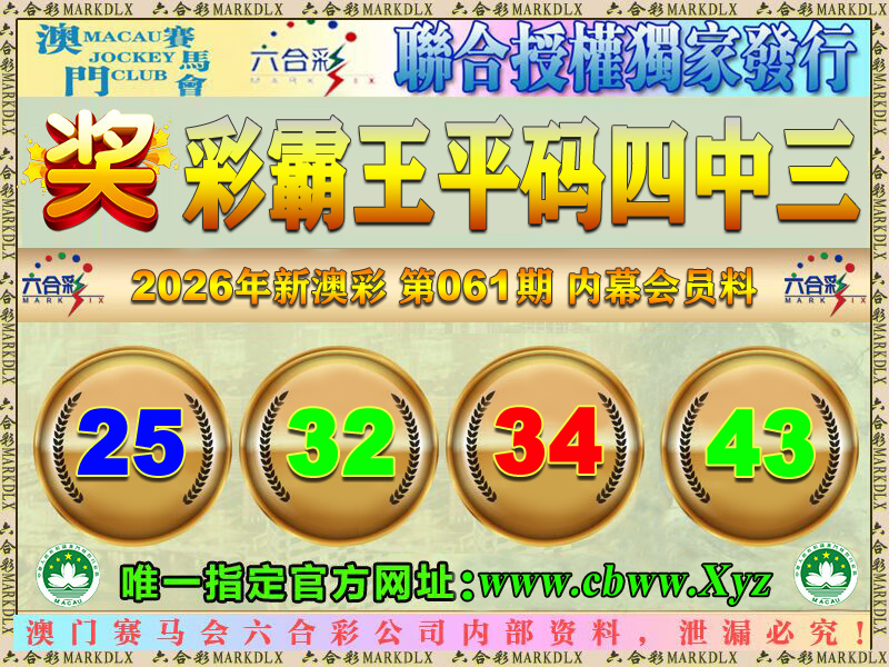 061期:彩霸王平码四中三:25-32-34-43 错